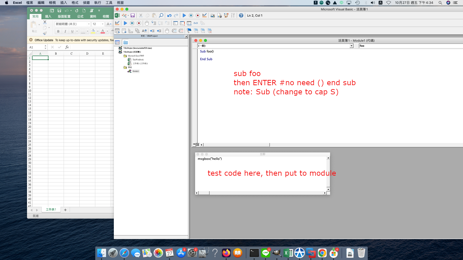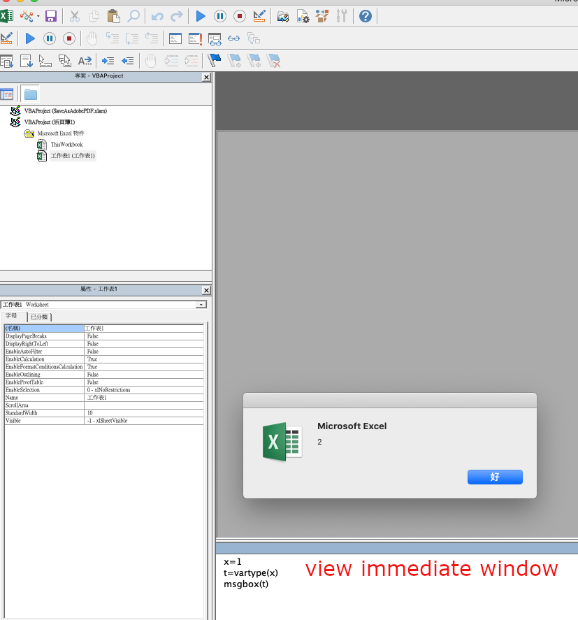 chap3 -- VarType -- vba most common type -- 立即 window -- hello world & string concatenate -- 每月分期付款 Equated Monthly Instalment EMI --