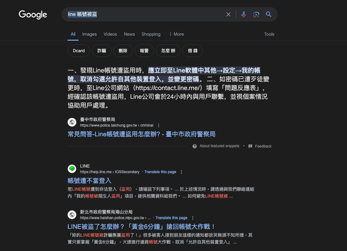 安全 -- 我的被騙經驗 -- line hacked -- 如何應對? -- 網址的真真假假