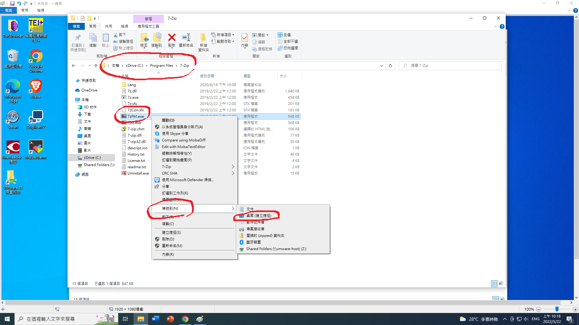 -- 解壓檔案 1. 內定 -- 2. 解壓共享軟體 7-zip
