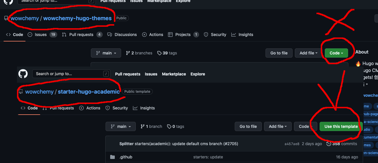 在 github 上的 wowchemy 帳號下有很多轉案 (repo) 都和 netlify 有關