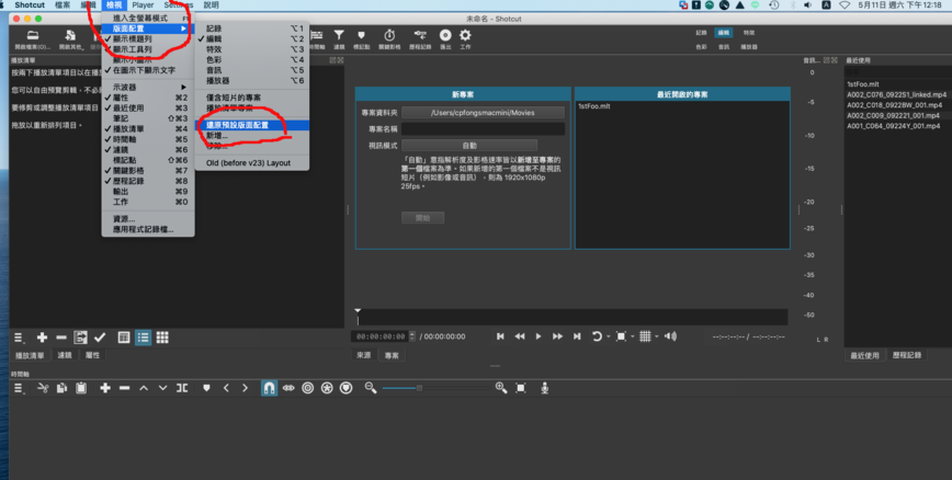 新專案 -- 先命名第一個專案 -- 把你要的素材放入 playList -- preview -- my first clip -- 加入另一個 video -- 轉場效應