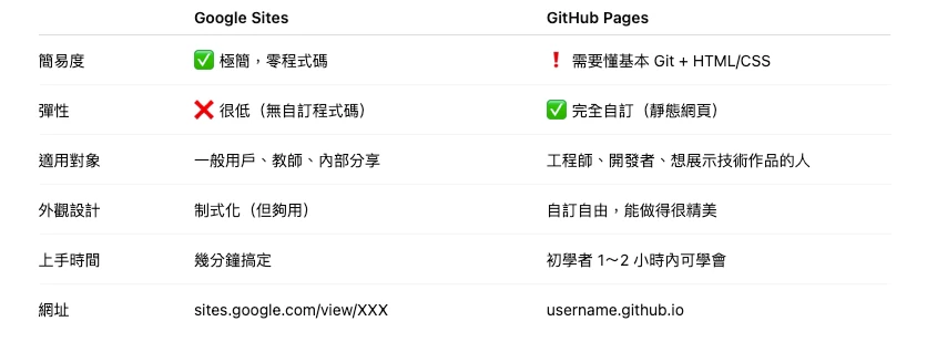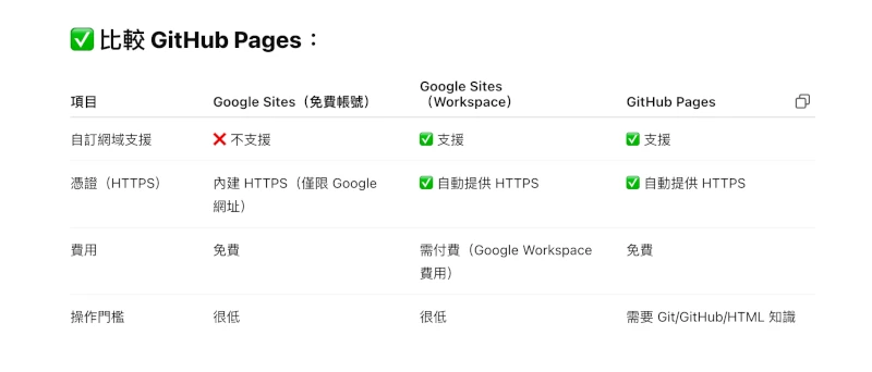 比較 -- 郵箱 vs 網頁 -- 'Google Site' vs 'GitHub' -- goo vs ghub Cust Domain