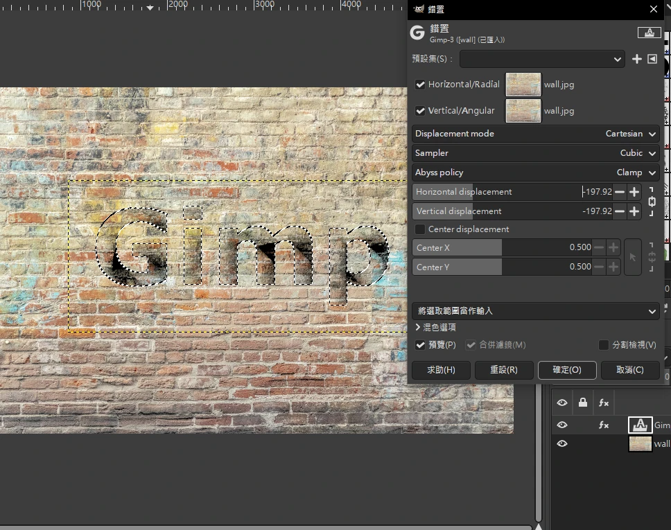 - 文字 -- 立體字 (複製後移位) / 加點模糊效果 -- 浮雕文字 font impact -- 位移濾鏡 -- filter/map/disp -- Note: Filter/Map/Bump is better than Filter/Dist/Embossing -- my Flame --