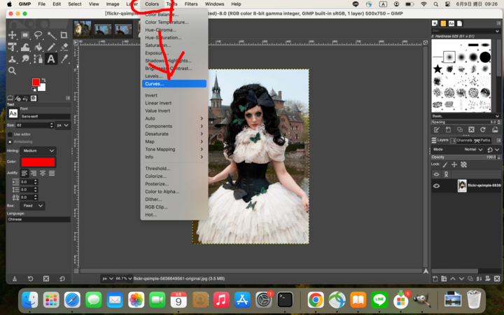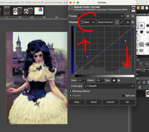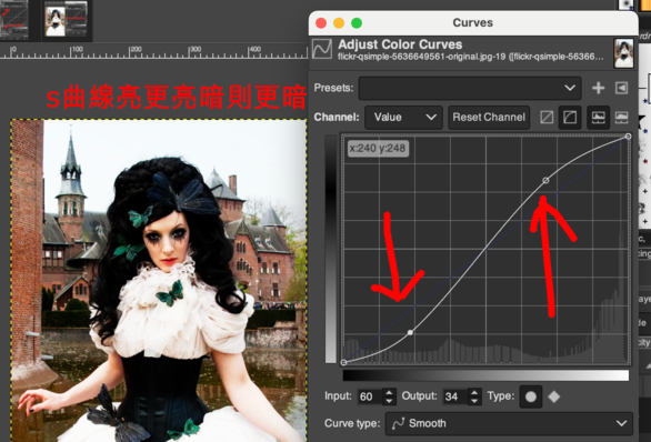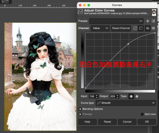 | Opening up my Curves dialog shows me the following | 由 menu color / curve 可顯示顏色曲線 -- ex |