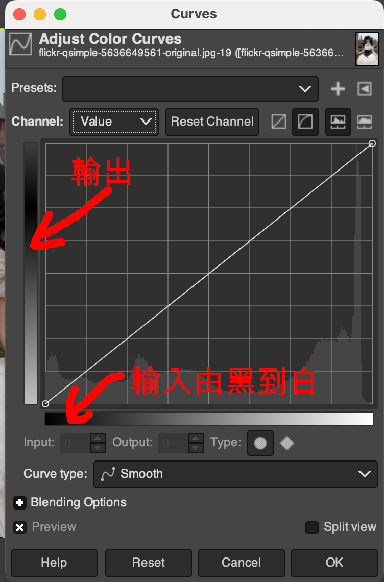 | bottom range from black to white represents current value of the pixels, and left range is the value to be mapped to. | X軸是輸入Y軸是輸出 -- ex -- more light in |
